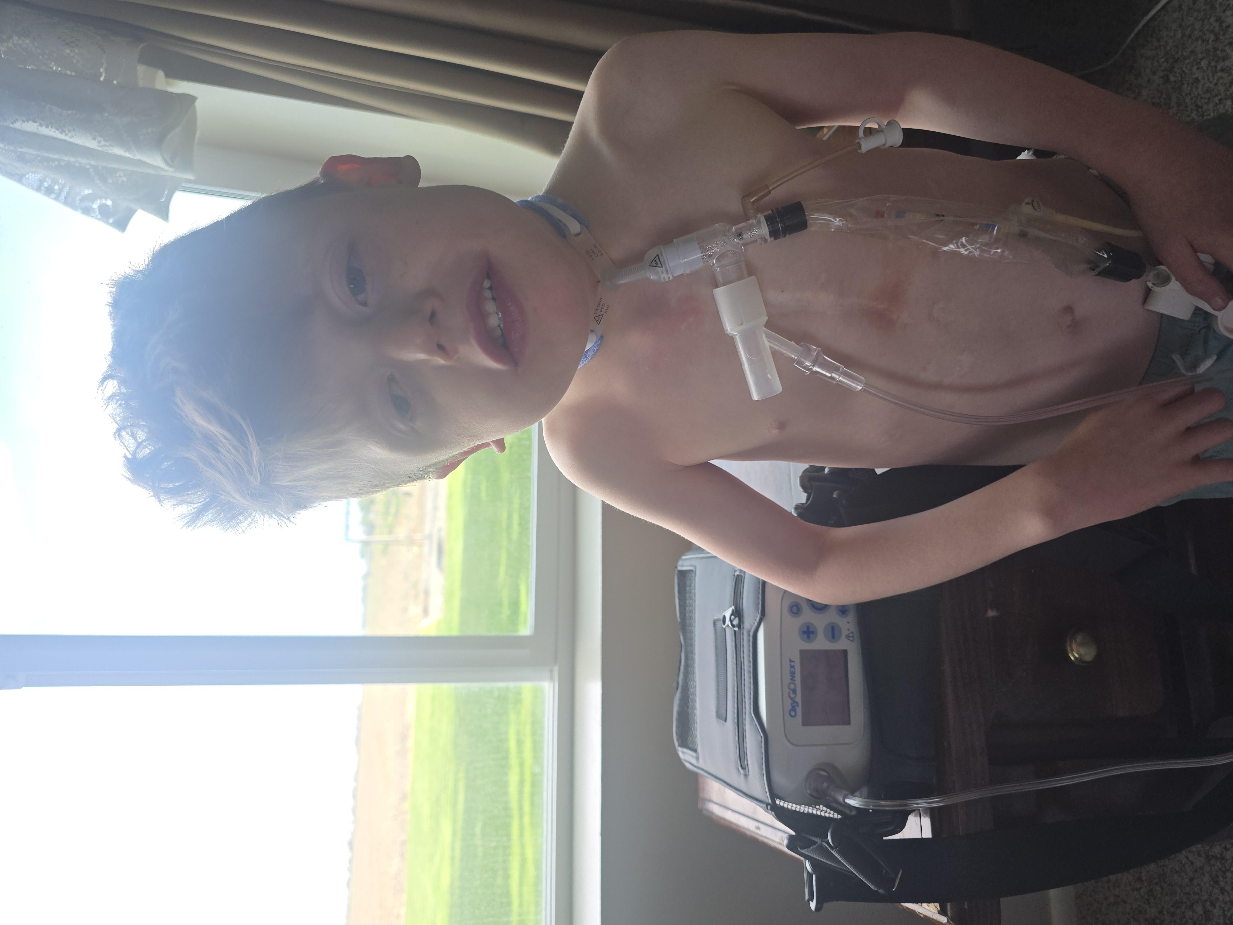 Emmett was born with multiple severe heart defects, airway defects and lung disease. He has flow out of state to different hospitals 3 times for surgeries. He will be flying out to Boston children's hospital in July for another surgery. This super awesome 6 year old is stronger than anyone I know!